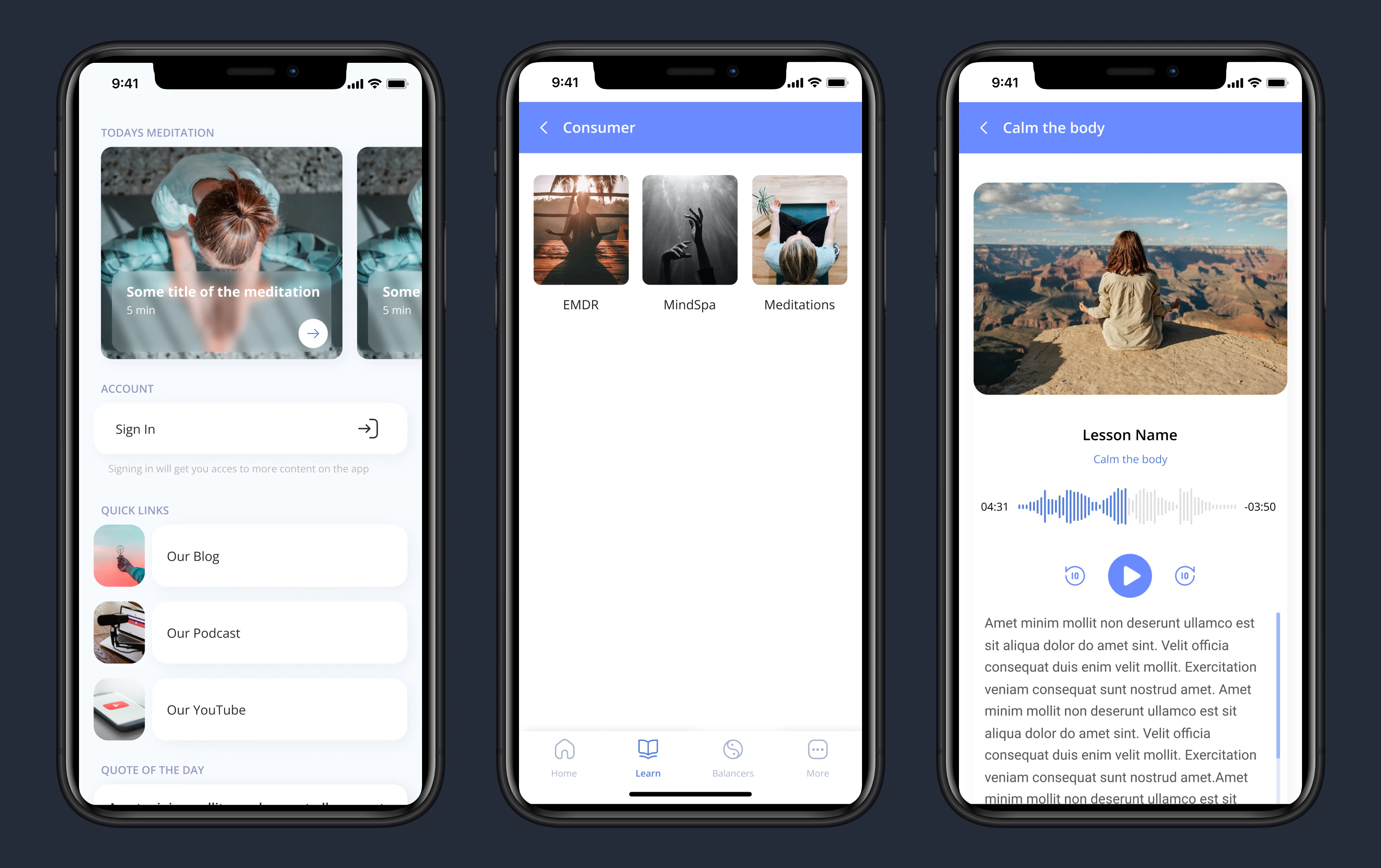 Mental Health Platform (USA) - provides digital support for mental health patients or simply users who are seeking clarity on their condition as well as a secure place to share their emotions and everyday events. The platform is based on scalable architecture and has more than 15 different 3rd party integrations to provide ready-to-go resources instead of creating all of the content from scratch.
