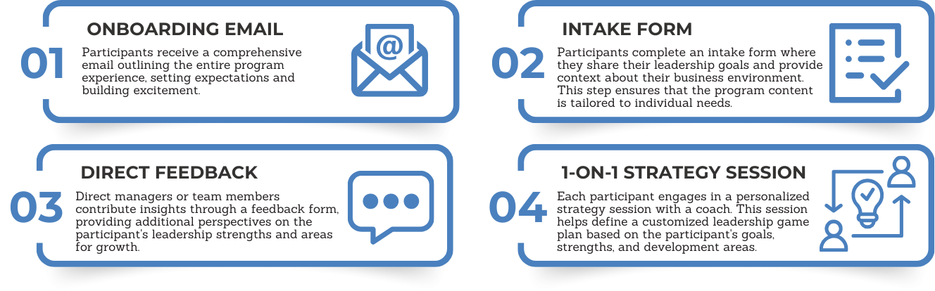 It can be customized to your goals, timing, logistics, and leadership levels. Our coaches will work with you to make it a high-impact, in-house experience for your team.