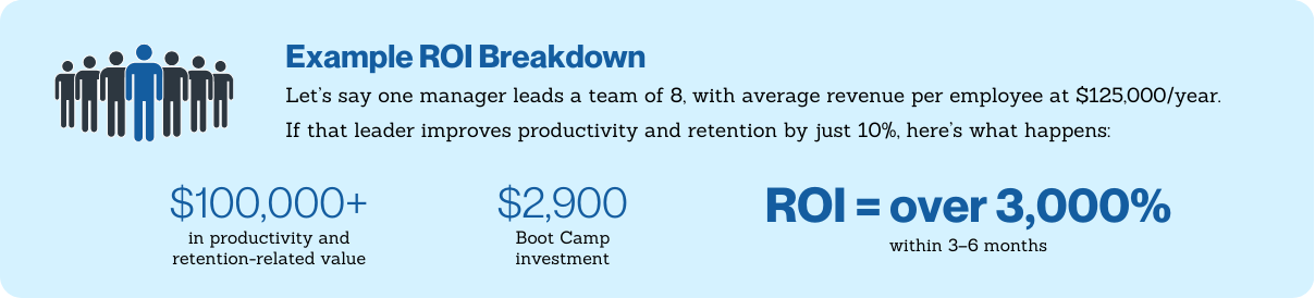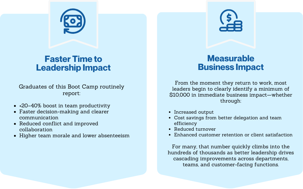 The results don’t wait for a post-training survey—leaders start generating ROI before they even leave the room.