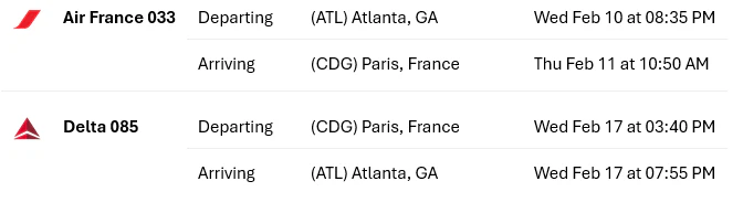 Depart this evening from Atlanta on an overnight flight to Paris, France. Bon voyage!