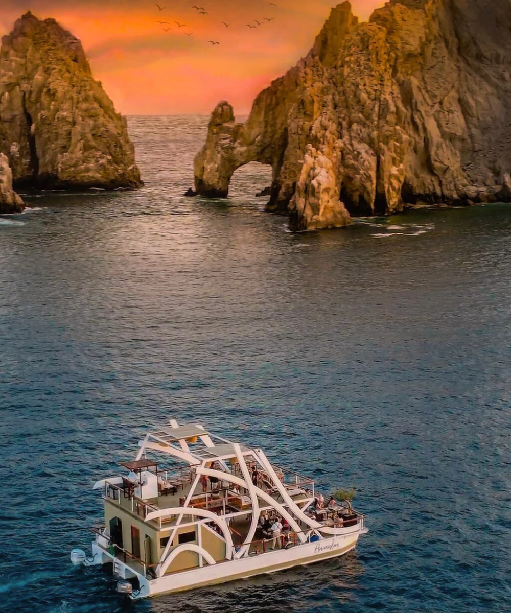Visit all of Cabo’s seaside highlights, such as the Arch, Pelican Rock, and Lover’s Beach, Sea Lion Colony, be amazed by whale season, and allow us to pamper you with a cold beer or fresh Margaritas while you take in the 360-degree ocean vista. Indulge in a journey through the Sea of Cortez aboard the most exclusive, luxurious, and enchanting catamaran in Los Cabos. This catamaran has captured the attention of renowned magazines, establishing itself as a symbol of sophistication.