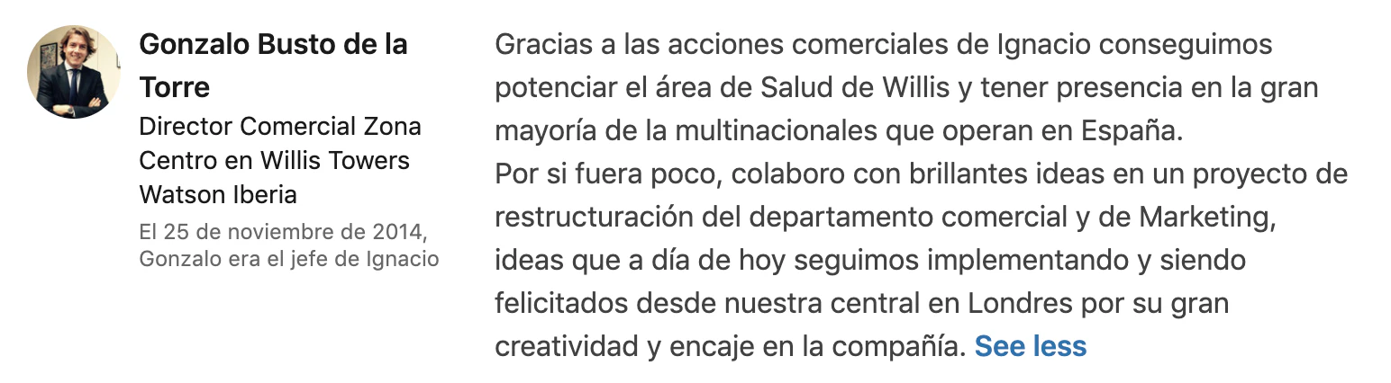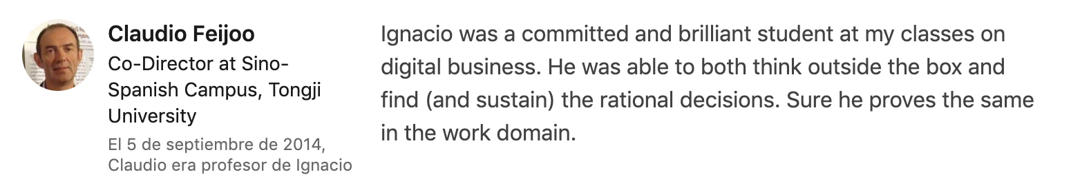 My first working experience! I applied as an intern while finishing my last year at university. It was a tough experience to manage both duties at the same time, but eventually I made it and achieved an Account Executive position at the company and even improved my GPA at university! After a year, I was accepted at IE Business School and enrolled in a Full-Time MSc.
