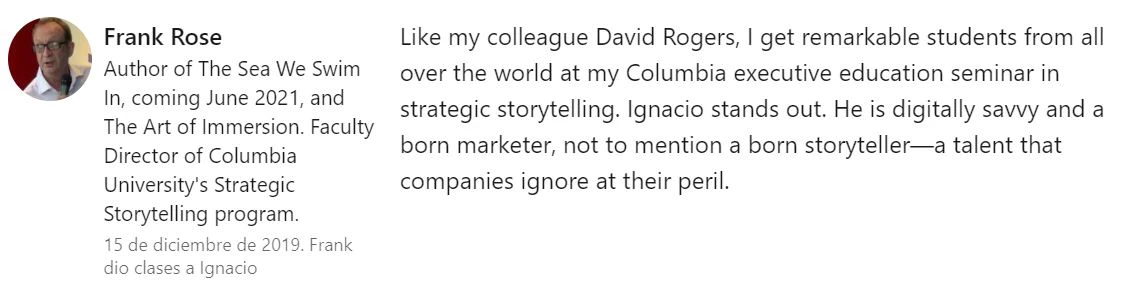 I am teaching Marketing in the PADDB (Programa de Alta Dirección en Digital Business) sharing best practices, discerning real case studies and mentoring my students.