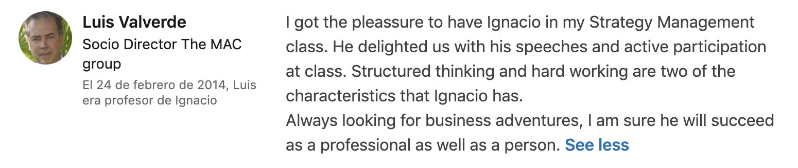 - Member of the IE Marketing and Entrepreneurship Clubs.